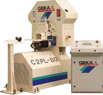 Основное предназначение - пробивка отверстий в уголке ( угловом прокате с размерами полок от 40 до 80 мм ), рубка, резка в размер подаваемых с роликового рольганга длинномерных заготовок. Линия незаменима для организации крупных производств по производству металлоконструкций, опор линий электропередач ( ЛЭП ), вышек связи и.т.д при использовании совместно с линиями типа ALPS, так и в качестве самостоятельной единицы для менее крупных и средних производств. Высокая скорость обработки, загрузки и точность достикается путём использования системы энкодеров и организации подачи спомощью роликового протяжного механизма. Управление происходит по программе, где оператором задаются координаты отверстий по длинне оси "X" и размер готовой детали. Координаты отверстий по "Y" - расстояние от центра отверстия до полок обрабатываемого уголка, задаются в перед выполением операции, а в отдельных случаях во время выполения программы путём механического перемещения ручки позиционера. Уход от дополнительных программных регулировок по оси "Y" пооложительно сказывается на стоимости данной модели для заказчика, и позволяет существенно повысить производительность по сравнению с обработкой на пресс-ножницах и пробивных прессах. Оперативная смена инструмента, позволяет пробивать отверстия разных диаметров при повторном прогоне заготовки. Невысокая стоимость, качество обработки - основные достоинства линии для пробивки прошивки отверстий GEKA.