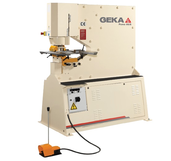 Профессиональная линейка пробивных прессов компании GEKA представлена моделями от 55 до 200 тонн имеют несколько модификаций по глубине зева (рабочего или полезного вылета) Модификации с индексом "S" имеет стандартный зев, а модели с индексом "SD" увеличенный полезный вылет.. В некоторых моделях он достигает 800 мм , что позволяет пробивать лист шириной 1600 мм по центру. Увеличенный рабочий зев является большим преимуществом т.к. позволяет установить на пробивной пресс ситему позиционирования заготовок с ЧПУ Semipaxy либо PAXY